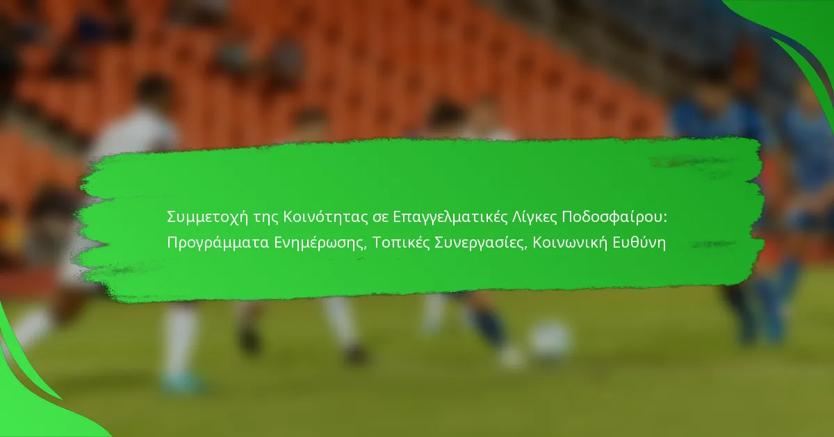 Η αξιολόγηση της αποτελεσματικότητας της εμπλοκής της κοινότητας στις επαγγελματικές ποδοσφαιρικές λίγκες περιλαμβάνει αρκετούς βασικούς δείκτες που αξιολογούν τα προγράμματα προσέγγισης, τις τοπικές συνεργασίες και τις πρωτοβουλίες κοινωνικής ευθύνης. Αυτοί οι δείκτες βοηθούν τις λίγκες να κατανοήσουν τον αντίκτυπό τους στις κοινότητες και να εντοπίσουν τομείς προς βελτίωση.
