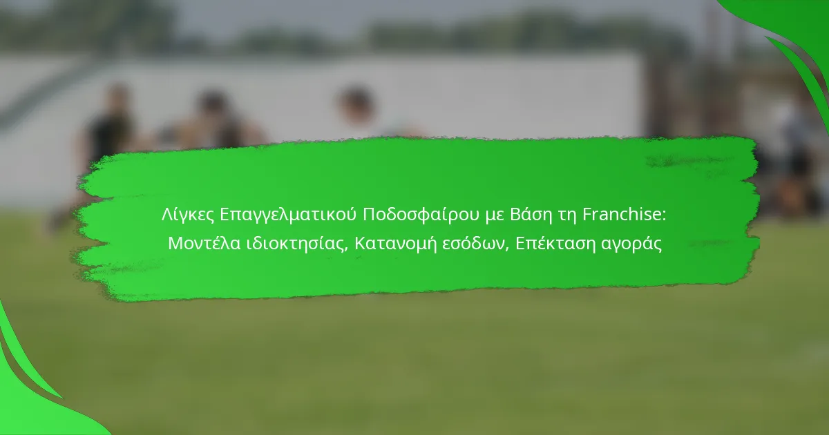 Οι επαγγελματικές ποδοσφαιρικές λίγκες που βασίζονται σε franchises λειτουργούν υπό διάφορα μοντέλα ιδιοκτησίας, συμπεριλαμβανομένης της ατομικής ιδιοκτησίας, της ομαδικής ιδιοκτησίας και της κοινοτικής ιδιοκτησίας, καθένα από τα οποία επηρεάζει τη διακυβέρνηση και τη τοπική εμπλοκή. Η κατανομή εσόδων παίζει ζωτικό ρόλο στην προώθηση της οικονομικής σταθερότητας και της ανταγωνιστικής ισορροπίας μεταξύ των ομάδων, επιτρέποντας στις μικρότερες ομάδες να ανταγωνίζονται δίπλα στις μεγαλύτερες. Επιπλέον, οι στρατηγικές επέκτασης της αγοράς είναι απαραίτητες για την ανάπτυξη, βασιζόμενες σε δημογραφική ανάλυση και καινοτόμο μάρκετινγκ για την προσαρμογή στις τοπικές αγορές.