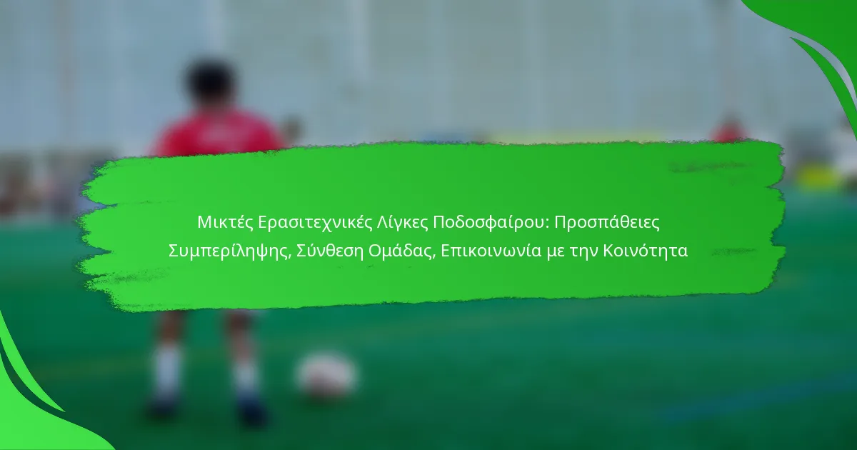Οι μικτές ερασιτεχνικές ποδοσφαιρικές λίγκες σχεδιάζονται για να προάγουν την ενσωμάτωση επιτρέποντας στους παίκτες διαφορετικών φύλων να αγωνίζονται μαζί, προάγοντας ένα ποικιλόμορφο και φιλόξενο περιβάλλον. Αυτές οι λίγκες επικεντρώνονται στη ισορροπημένη σύνθεση ομάδων και στις προσπάθειες κοινοτικής προσέγγισης, διασφαλίζοντας ότι όλοι οι συμμετέχοντες αισθάνονται πολύτιμοι και εμπλεκόμενοι στο άθλημα. Με την έμφαση στην ενσωμάτωση, ενισχύουν τη δυναμική της ομάδας και ενθαρρύνουν τη μεγαλύτερη συμμετοχή στο ερασιτεχνικό ποδόσφαιρο.